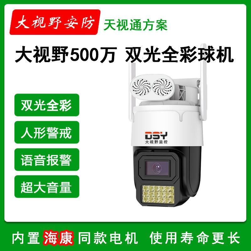 大视野962-WIFI版(天视通方案) 6寸500万 双光全彩 智能警戒球机