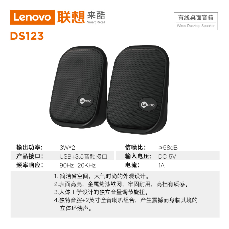 商品名称:联想来酷DS123 2.0小音箱黑色