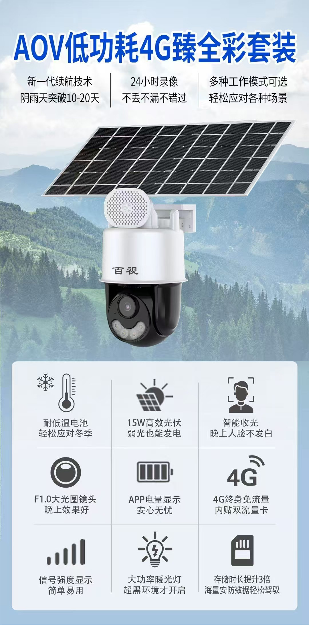 商品名称:【终生免流量】百视A57-4G 500万臻全彩 太阳能监控套装(续航15天左右)