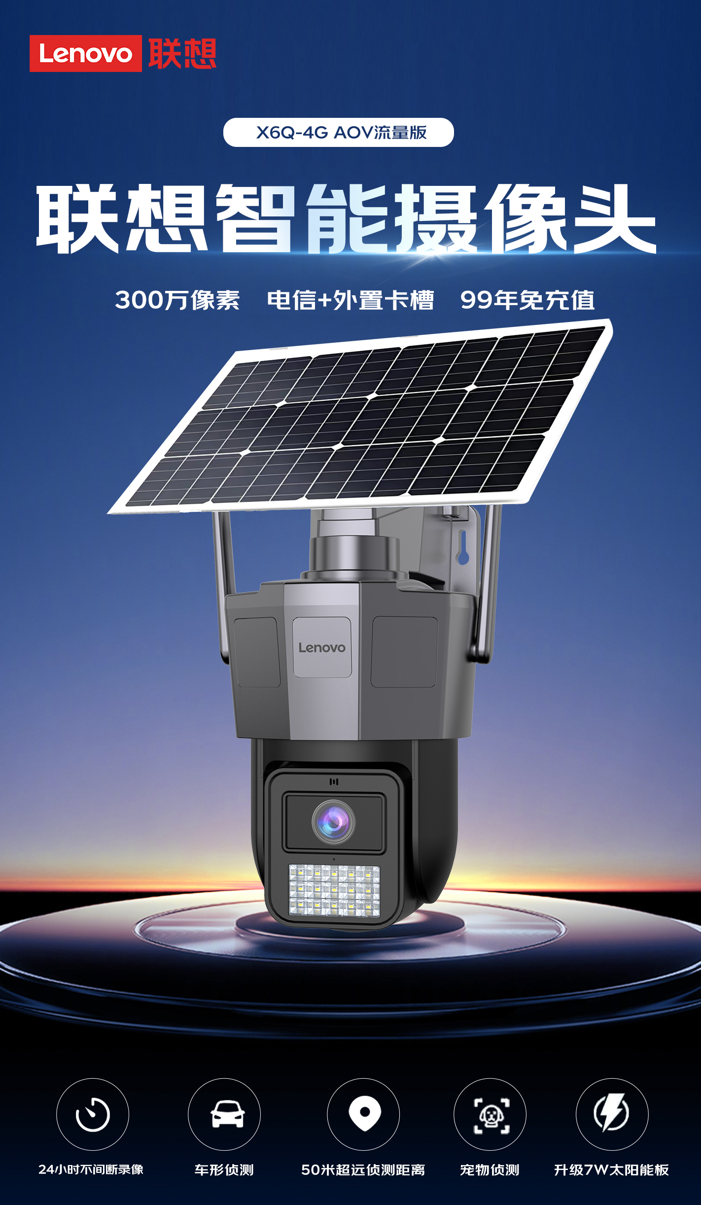 【终身免流量】联想X6Q-AOV 300万 太阳能监控套装(续航10天左右)