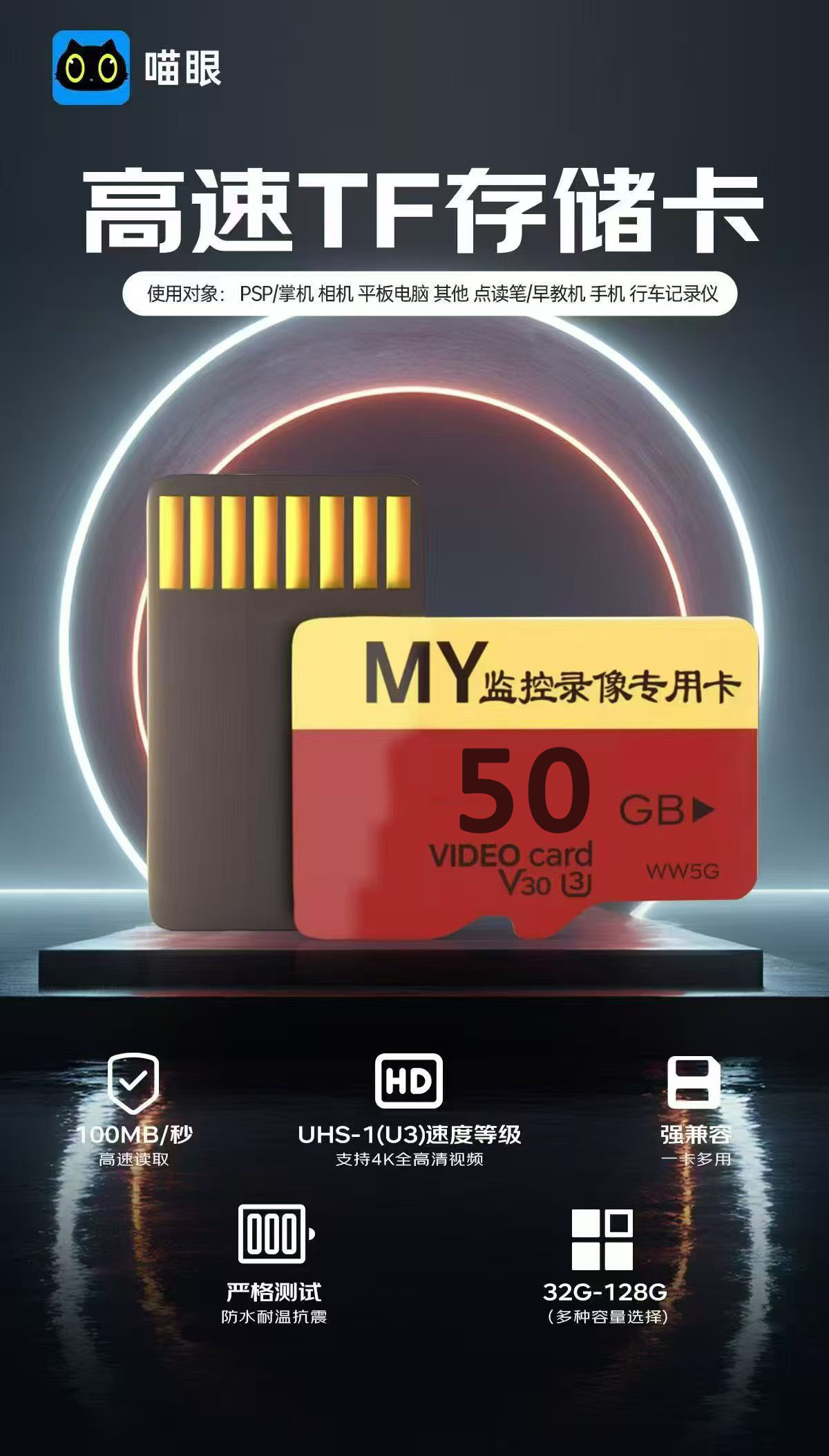 商品名称:喵眼 50G TF卡 监控专用高速卡